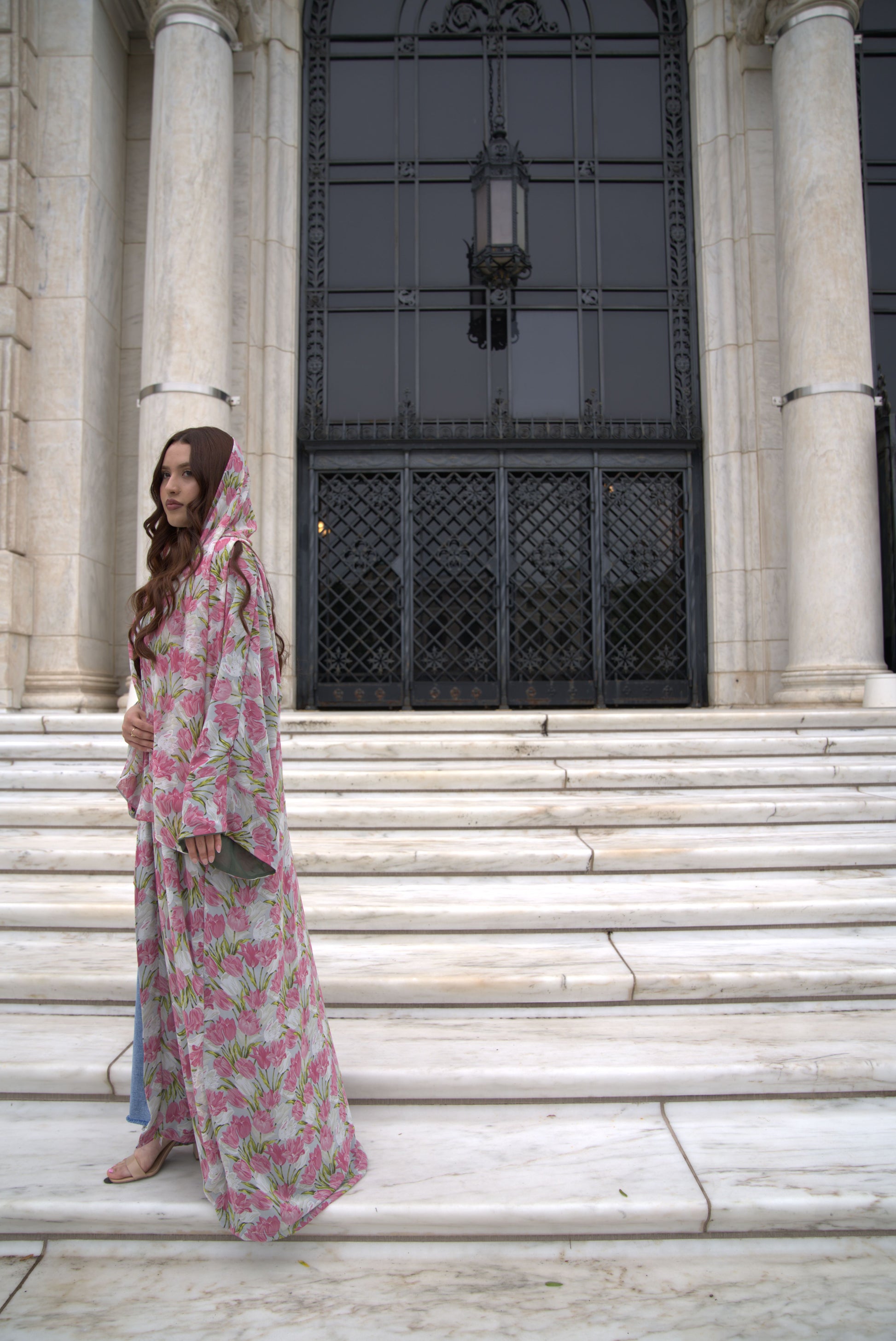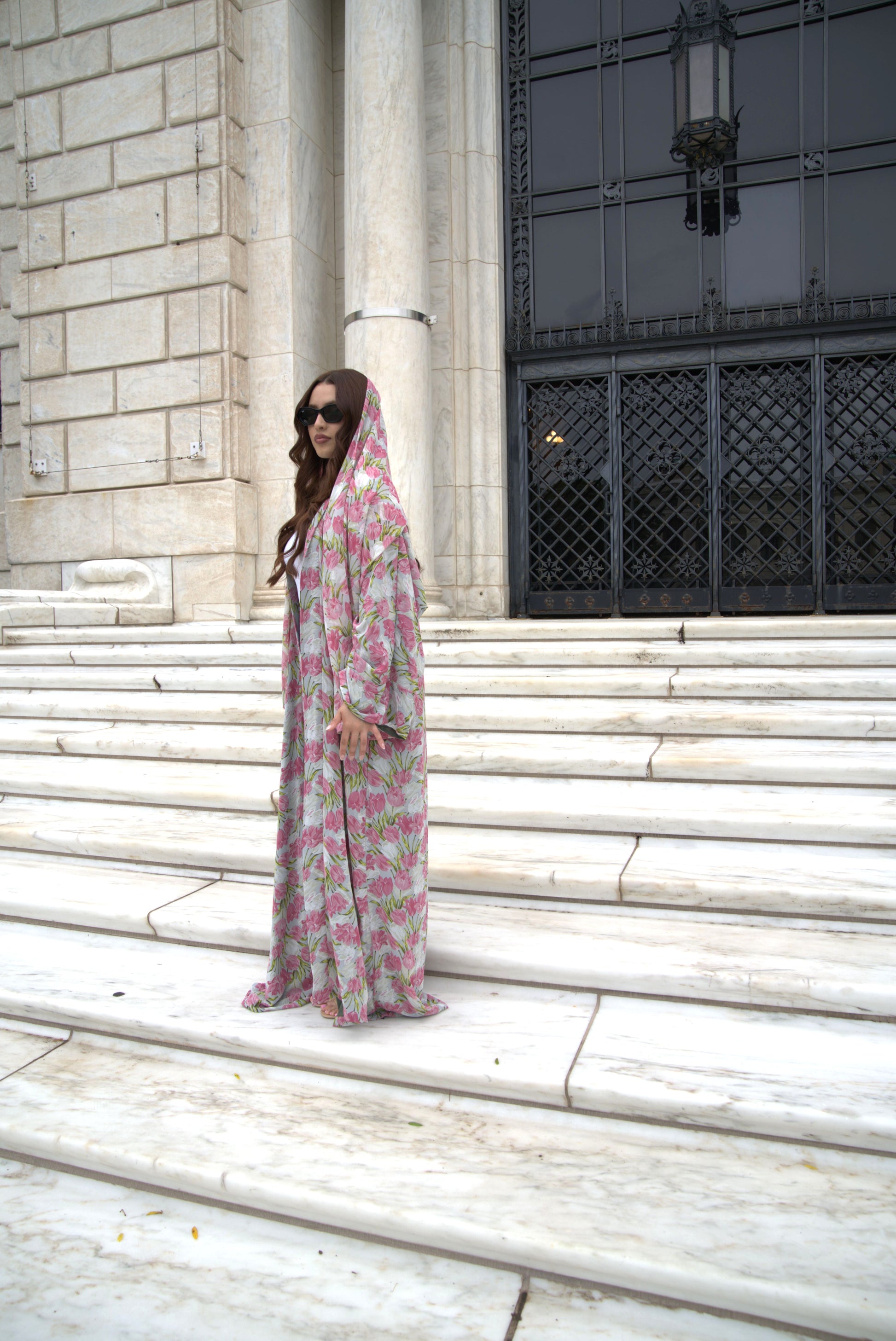 Soft, romantic, and undeniably graceful, Tulip Bouquet is a 3-piece chiffon abayah set designed to embody feminine elegance. The open abayah features a delicate floral print of pink tulips and green stems on a subtle neutral base — a blooming tribute to beauty in full expression.